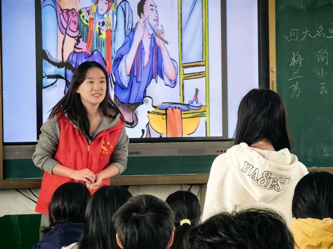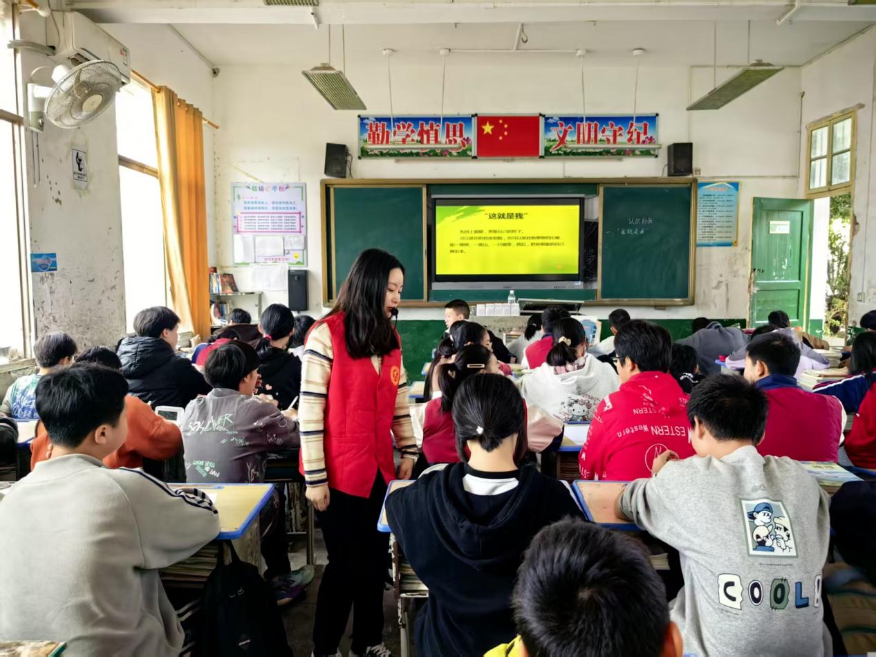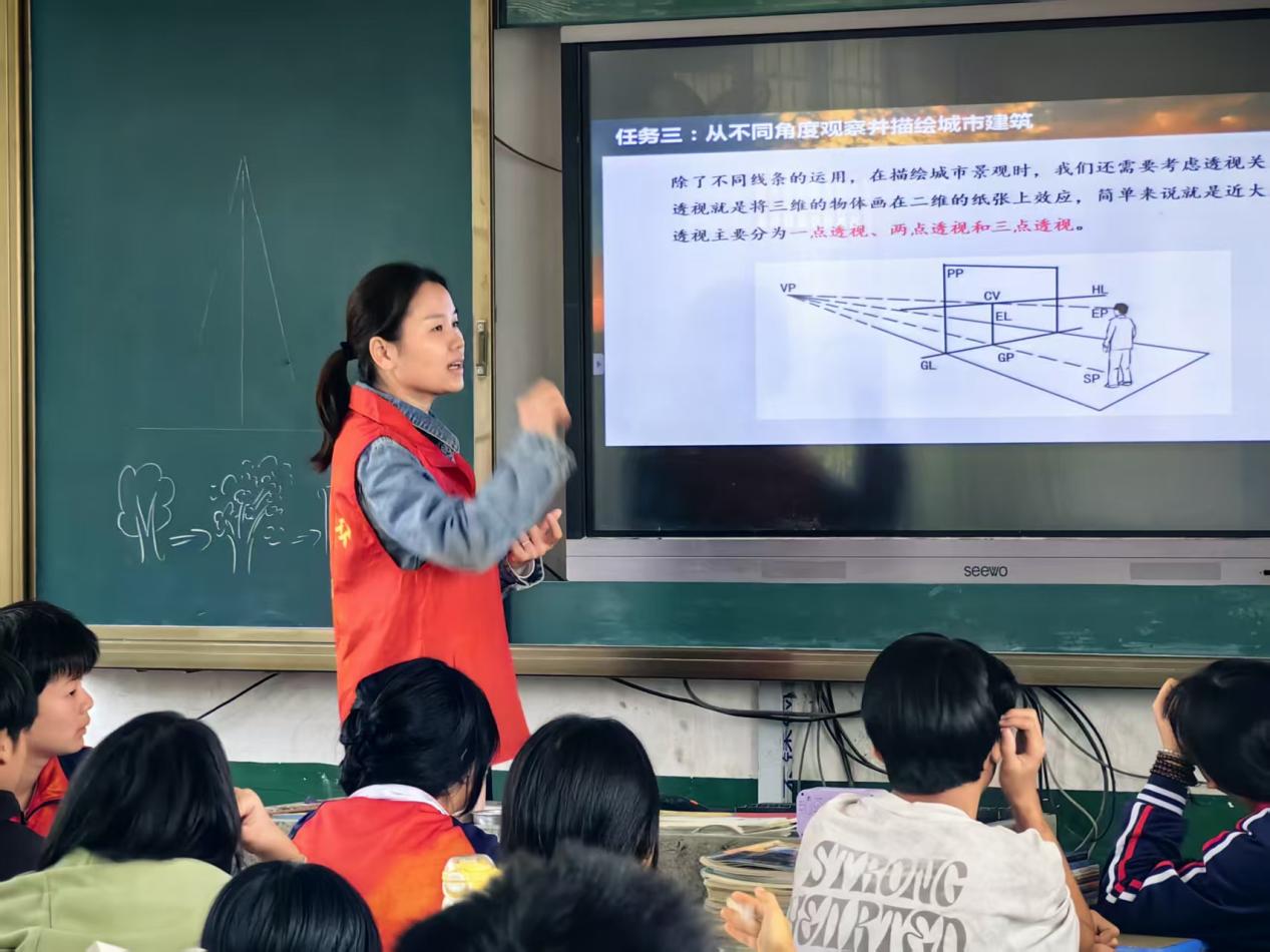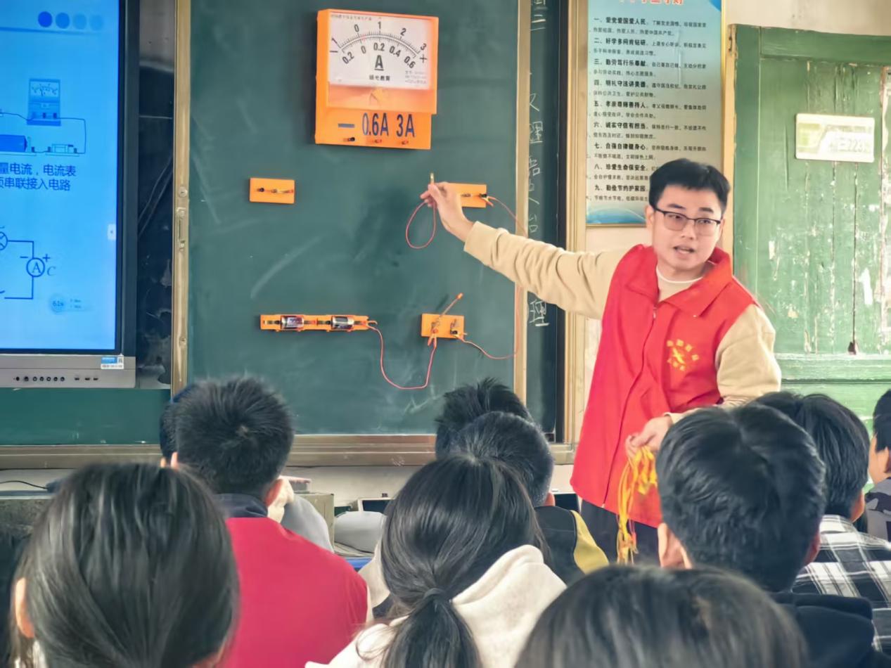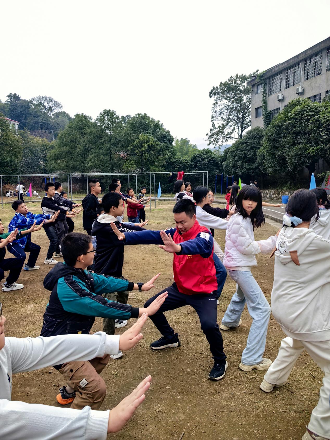 老师们精心准备、各显身手,为界牌镇中学的孩子们带来了一堂堂精彩的送教课:蔡喜凤老师为孩子们讲授《京剧鉴赏》,让优秀传统文化在孩子们心中生根发芽;王乐乐老师在课堂上富有启发性地引导孩子们品味城市建筑的美学内涵;李志刚、张智祥、唐睫怡三位老师带领孩子们完成一堂兼具挑战性和趣味性的武术操练课,孩子们活跃异常、热火朝天比试刚学会的"武林绝招";谭长茂老师用丰富的科学器材向孩子们演示光与电的"纠缠";王梦娴老师在温柔恬静的氛围中带领孩子们完成一场奇妙的心灵奇旅......现场气氛活跃,师生互动良好。随后,该校还向界牌镇中学的孩子们捐赠了体育器材,大家一同合影留念。
