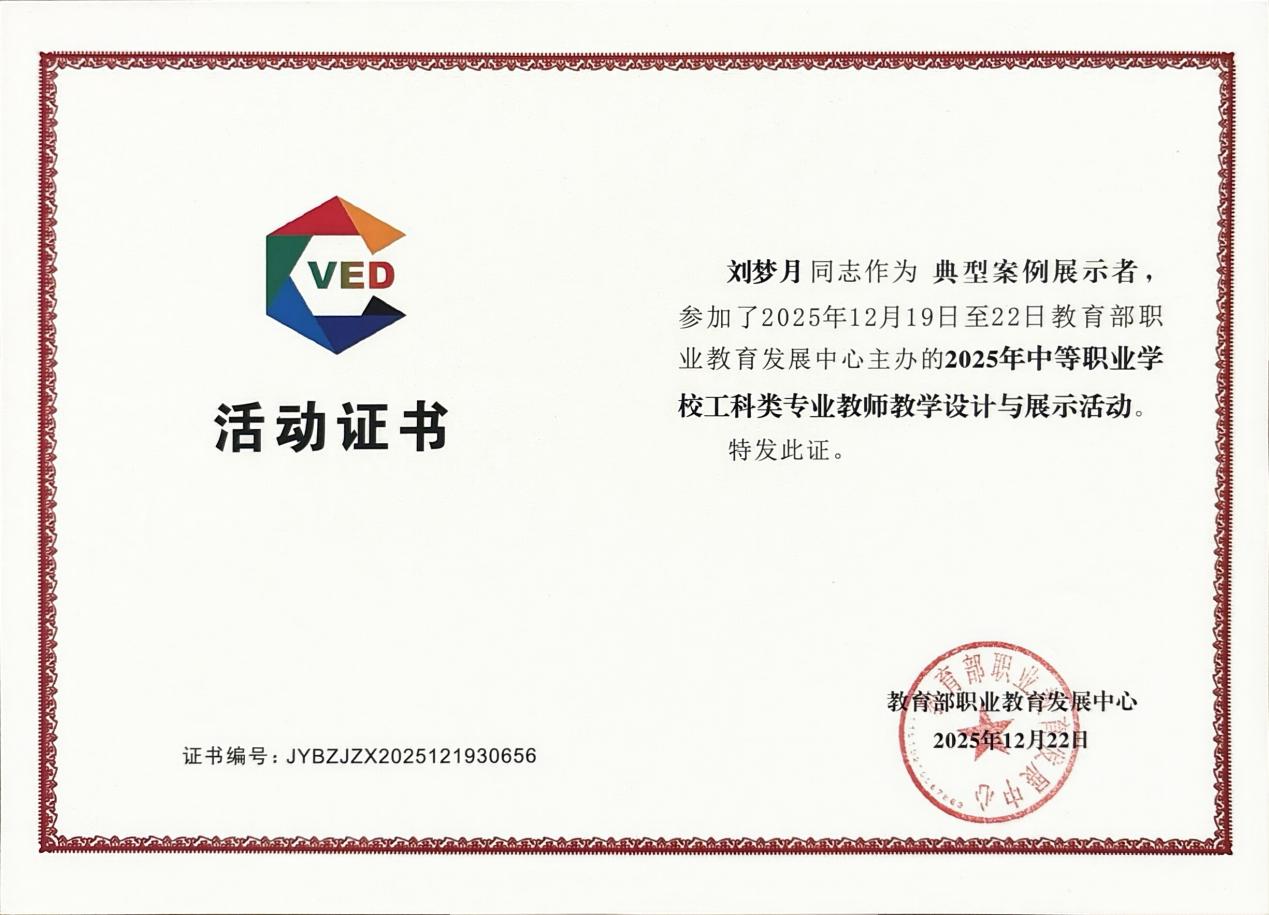此次获奖,不仅是刘梦月个人教学创新能力和专业水平的充分展现,更是学校长期坚持以教学为中心、深化教育教学改革的集中体现。近年来,学校紧密围绕国家和区域重点产业发展战略,大力推动专业升级与数字化改造,通过组建专业教学创新团队、建设校企合作实践平台等一系列举措,为教师成长和学生成才搭建了坚实舞台。