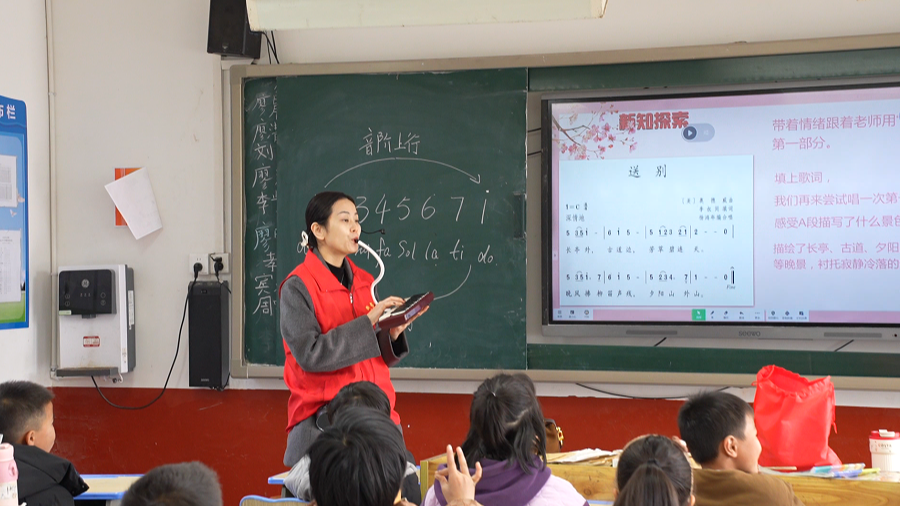 音乐教室里,代悦老师指尖流淌的钢琴声与孩子们清澈的歌声交织在一起,一曲《送别》悠扬而起。"长亭外,古道边,芳草碧连天......"代老师娓娓道来歌曲背后的故事,讲述李叔同笔下那份穿越时空的离别之情。她引导孩子们在旋律中体会牵挂与祝福,学会珍惜相聚、感恩相伴。歌声落下,许多孩子眼中闪烁着光——那是艺术给予的情感共鸣,也是经典文化在心中播下的种子。