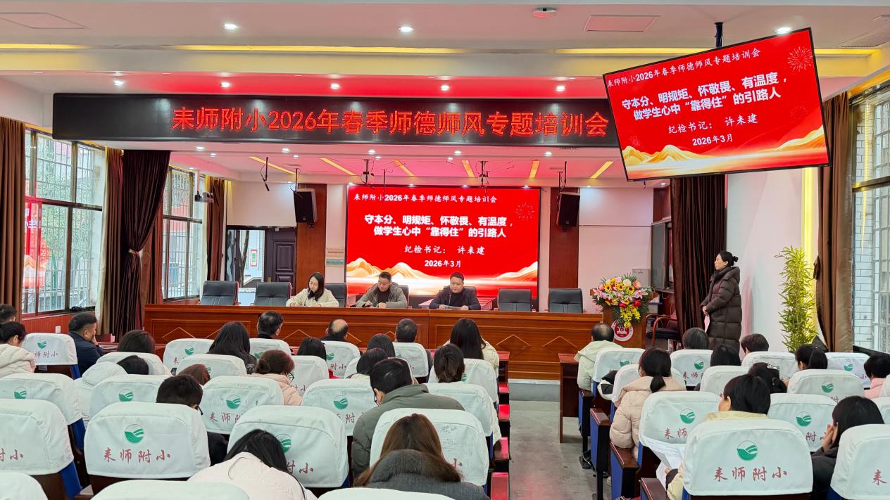 春风浩荡启新程,立德树人铸师魂。3月9日下午,耒师附小召开2026年春季师德师风专题培训会,围绕"弘扬龙马精神,勇担育人使命"主题,进一步强化教师师德素养,筑牢育人思想根基。