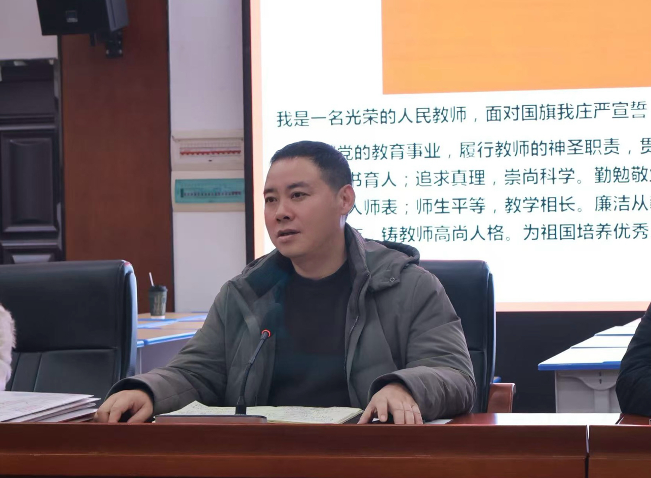 学校党总支书记莫亚韬作总结讲话,要求全体教师弘扬龙马精神,坚守师德底线,做有担当、有情怀的人民教师。
