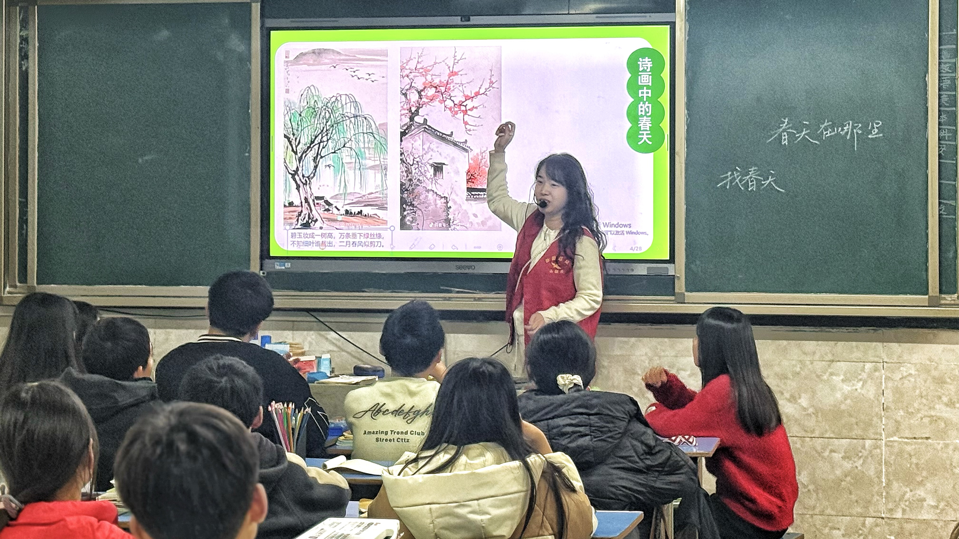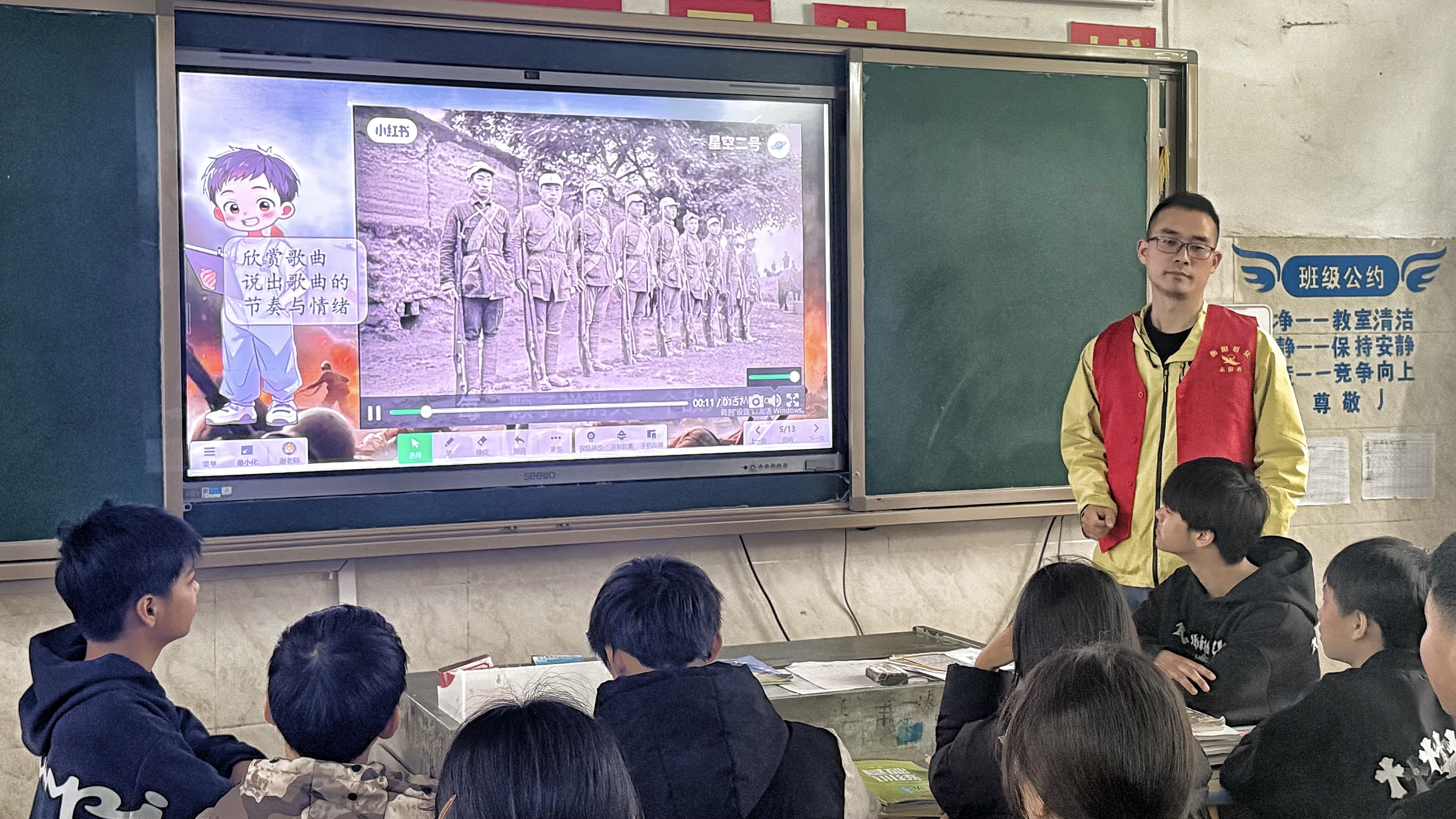 活动中,三位教师分别带来了各具特色的课程。音乐老师谢鹏讲授《游击队之歌》,结合歌曲背景讲解红色精神,耐心指导学生演唱,让孩子们在铿锵有力的歌声中感悟爱国情怀。体育老师梁晓涛带来《体育健康常识》课,用通俗易懂的语言讲解运动安全、科学锻炼等知识,通过互动问答帮助学生掌握实用的健康理念。美术老师王梦以《春天在哪里》为主题,引导学生观察与想象,用画笔描绘春日美景,手把手传授绘画技巧,课堂充满童趣与创意。