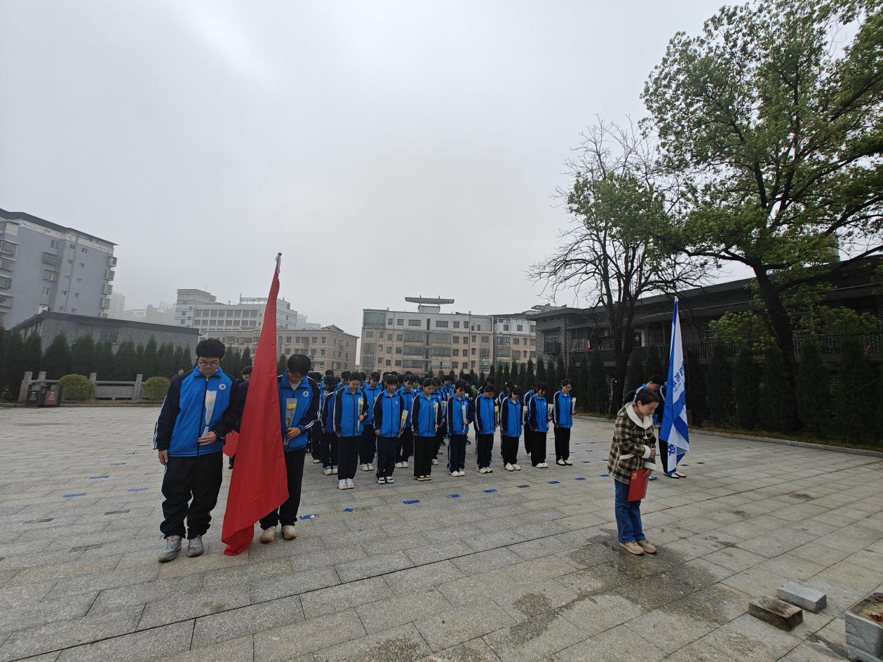 接下来,师生代表迈着沉重而整齐的步伐敬献花篮,花篮缎带承载着全体参与人员的深切哀思,"烈士精神永不朽,烈士光辉照长空,抗战遗址思英雄,无限悲痛无限情",简短的话语,道尽了对先烈的缅怀与敬仰。