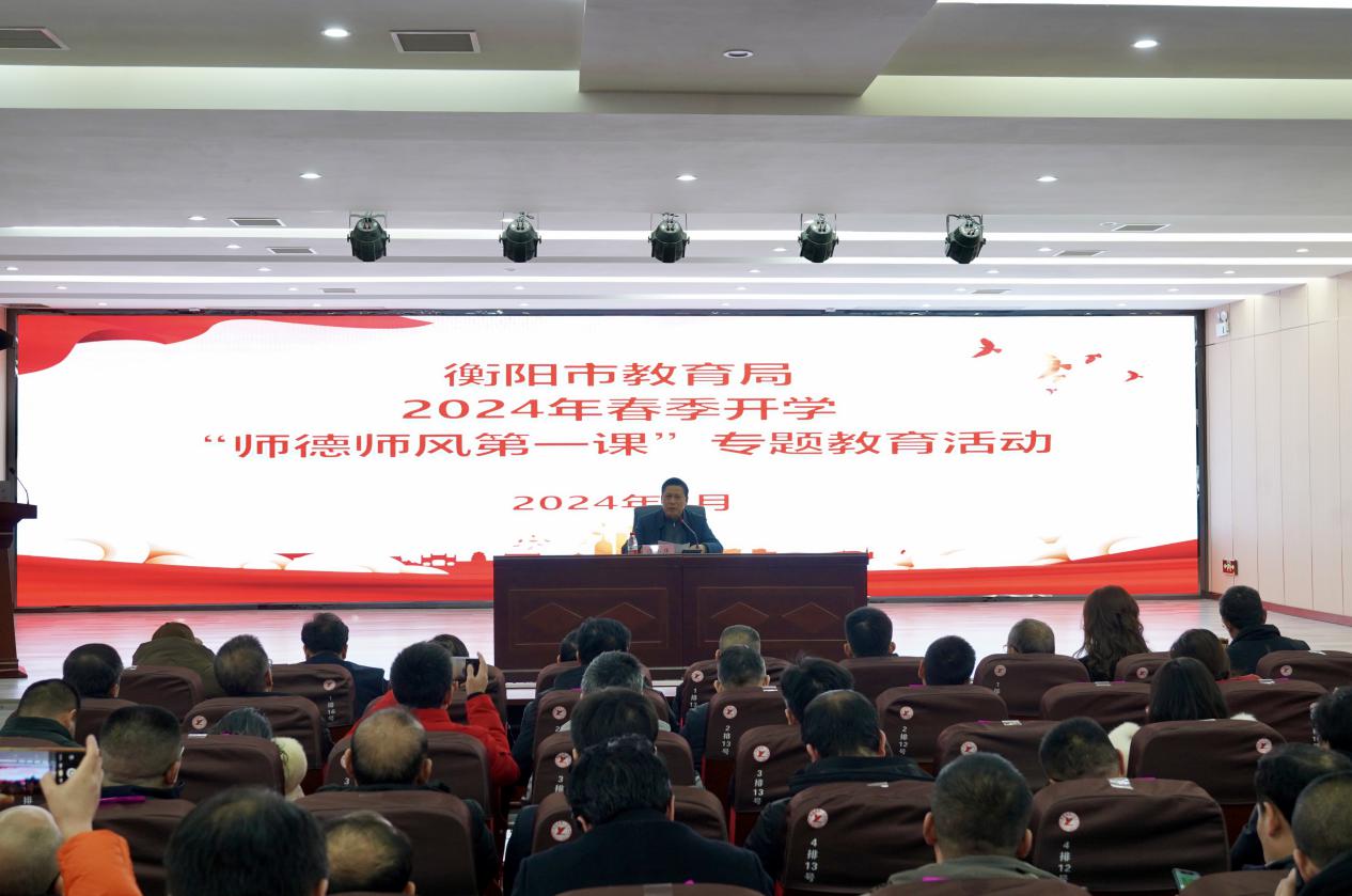 2月26日下午,衡阳市教育局开展2024年春季开学"师德师风第一课"专题教育活动,特邀"全国优秀共产党员"、《榜样8》专题节目录制对象衡阳市特殊教育学校刘玲琍开展师德现场宣讲。衡阳市教育局党组副书记、副局长谭小华主持活动并讲话。
