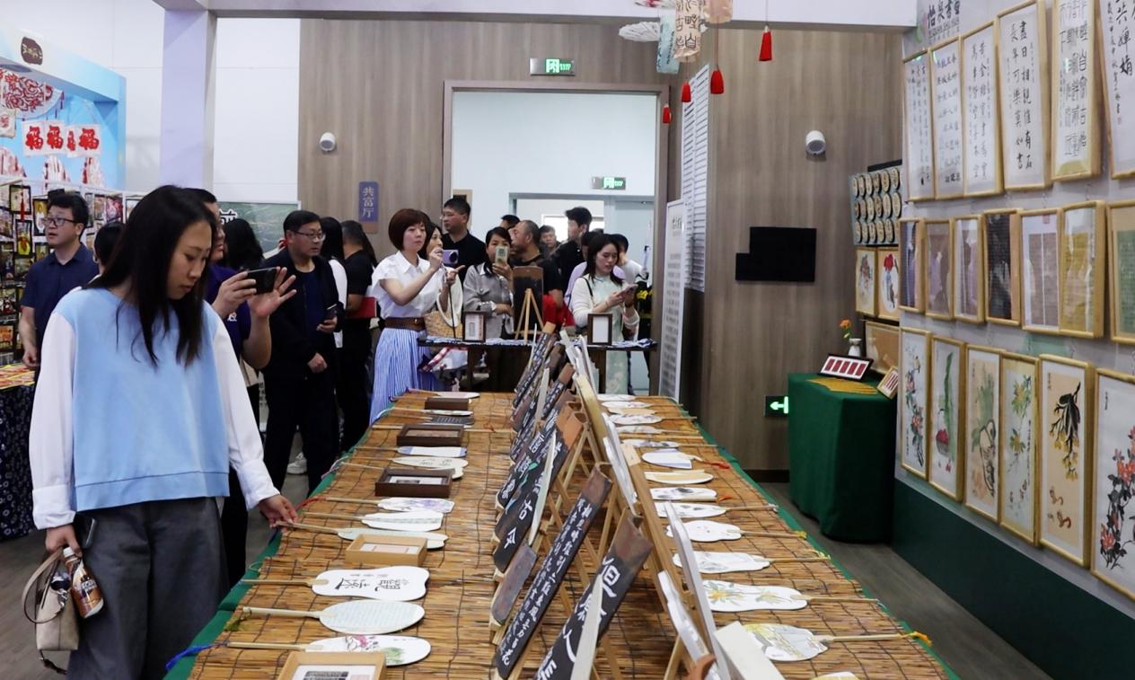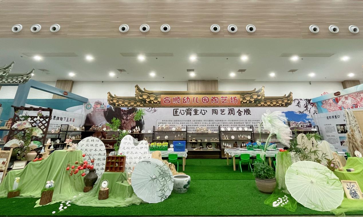 会议现场,衡阳县西渡中学、渣江联合学校、合顺幼儿园、江山学校、元培学校等多所学校及艺术机构带来特色成果展。雅韵青花瓷、国画、书画、剪纸、陶艺、漆扇、扎染、素描、科技、国防教育等展区,全方位展现我县体艺融合、美育浸润、五育并举的扎实成效。