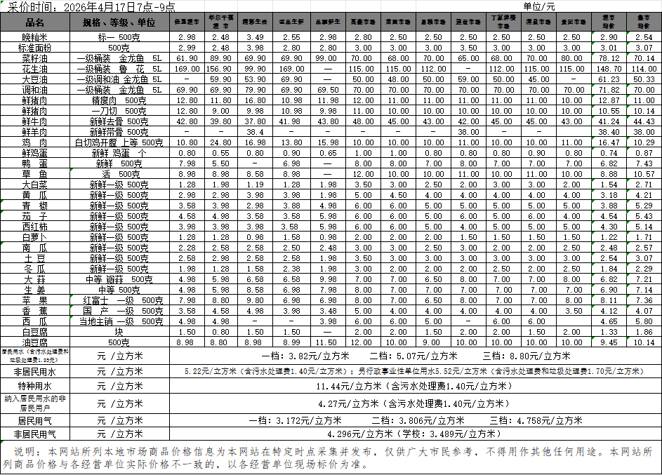 【物价】 2026-4-17衡阳市民生价格信息