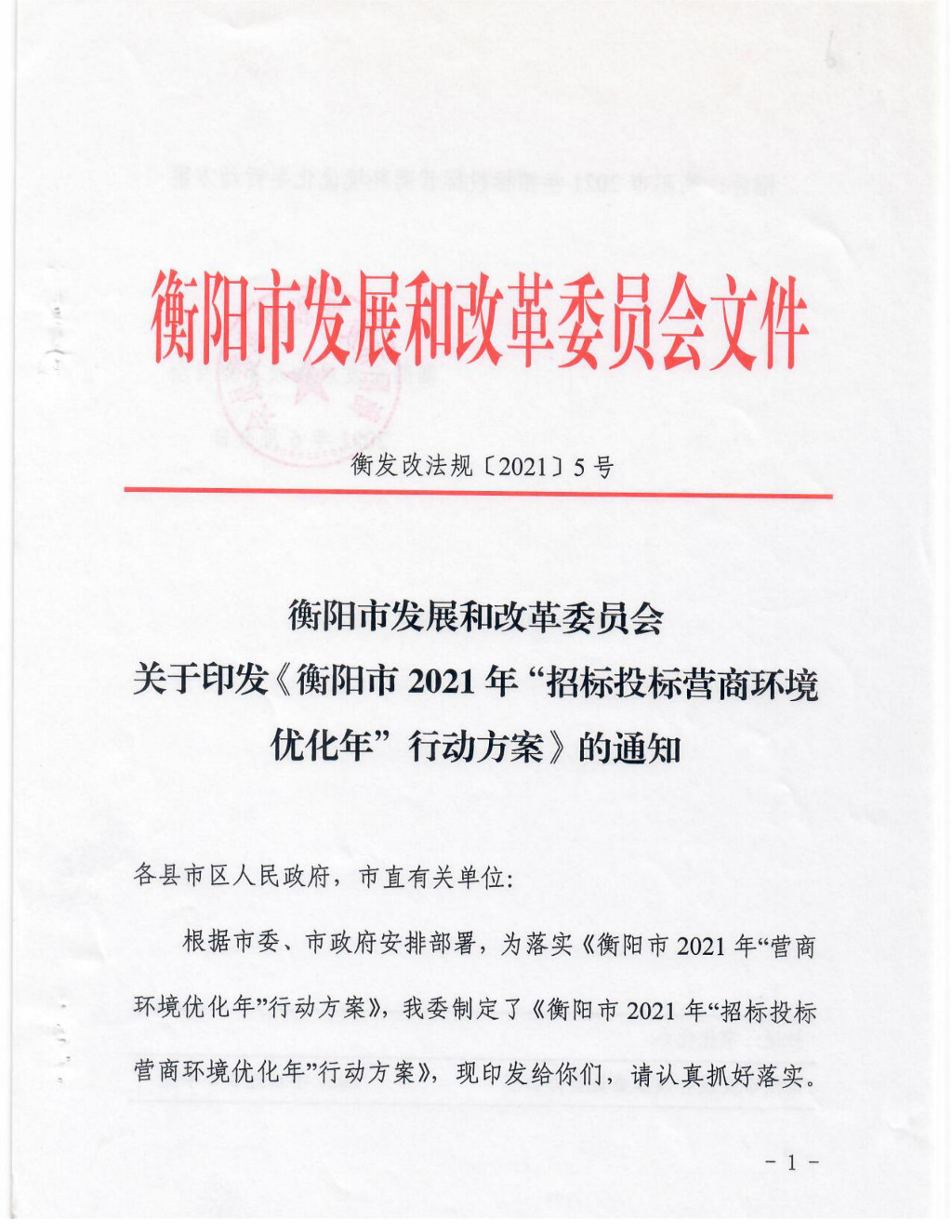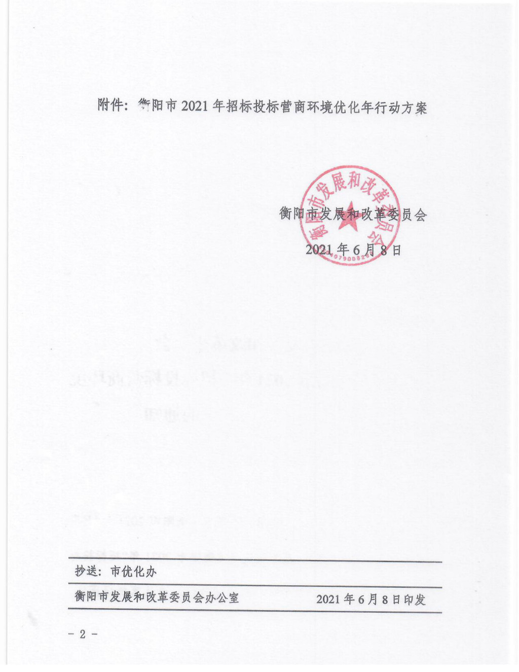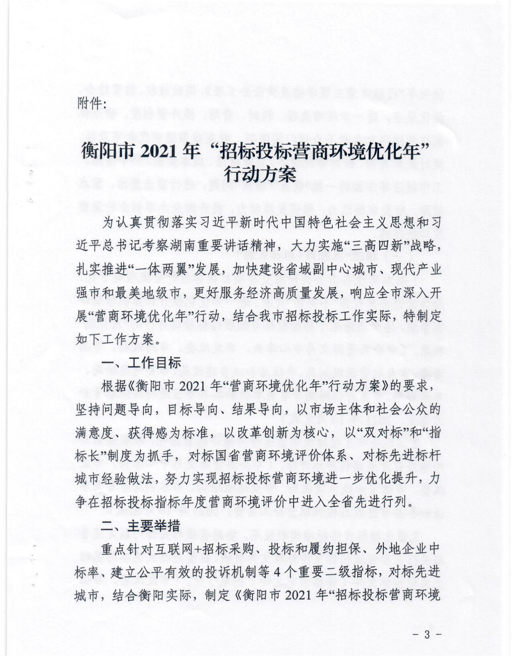 关于印发《衡阳市2021年招标投标营商环境优化年行动方案》的通知