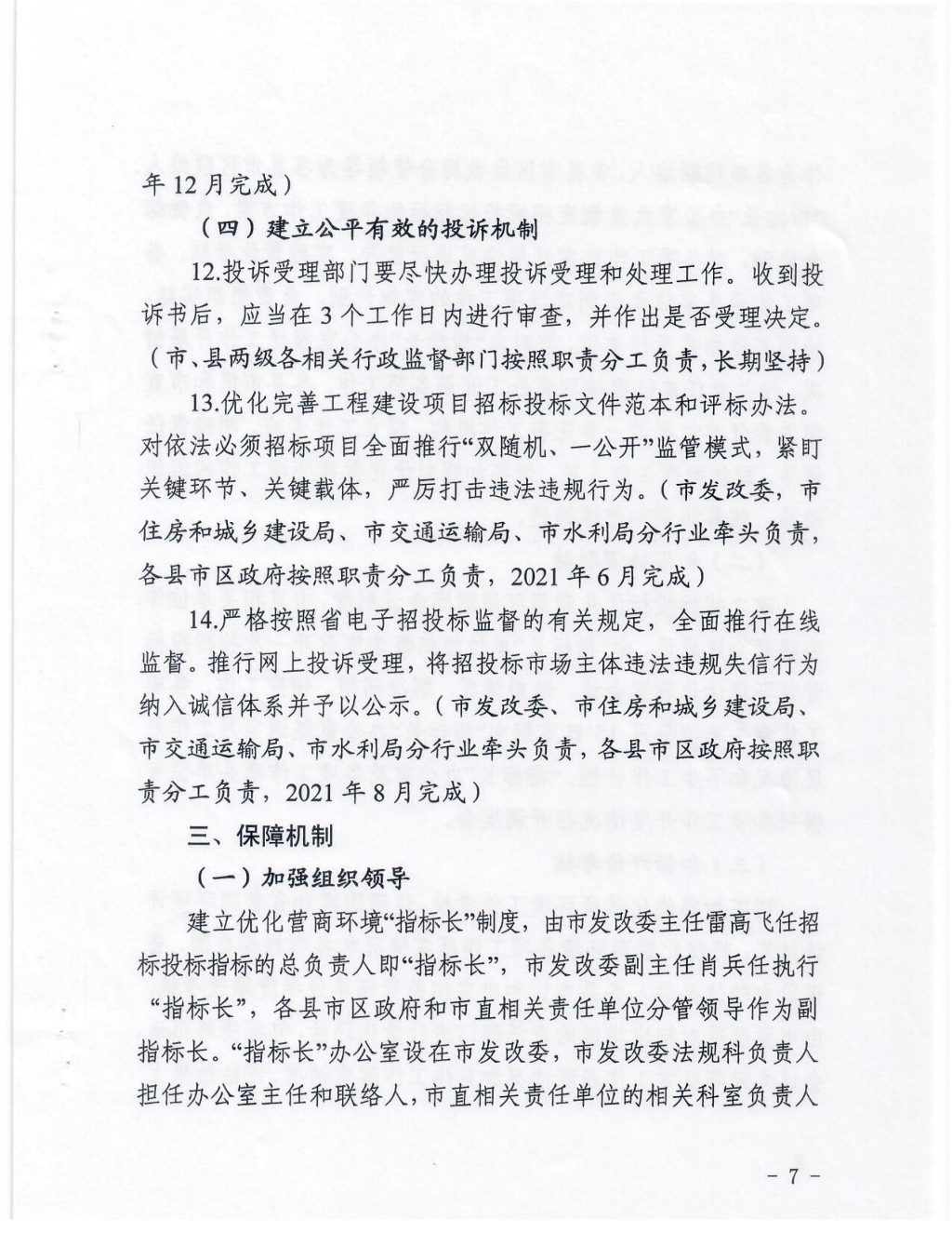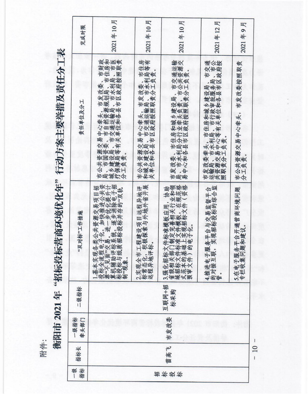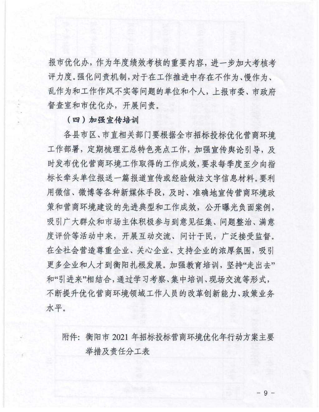 关于印发《衡阳市2021年招标投标营商环境优化年行动方案》的通知