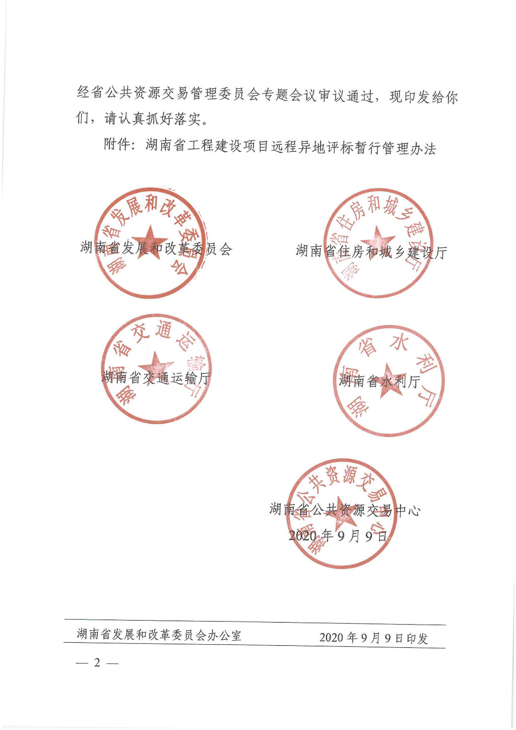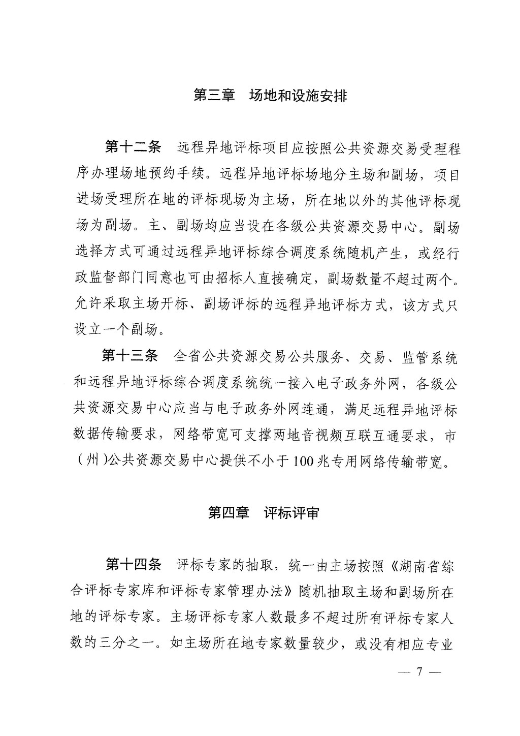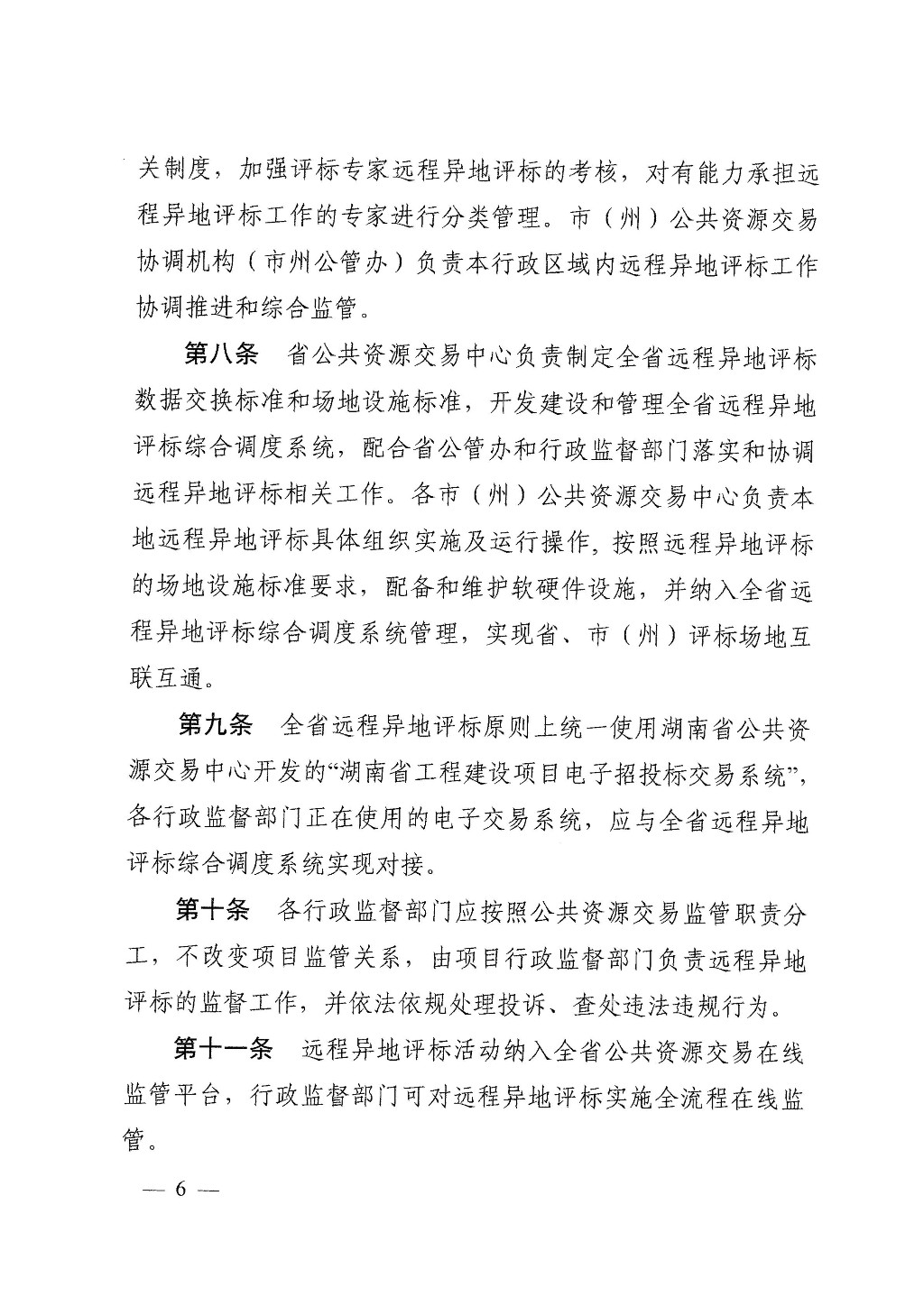 关于印发《湖南省工程建设项目远程异地评标暂行管理办法》的通知