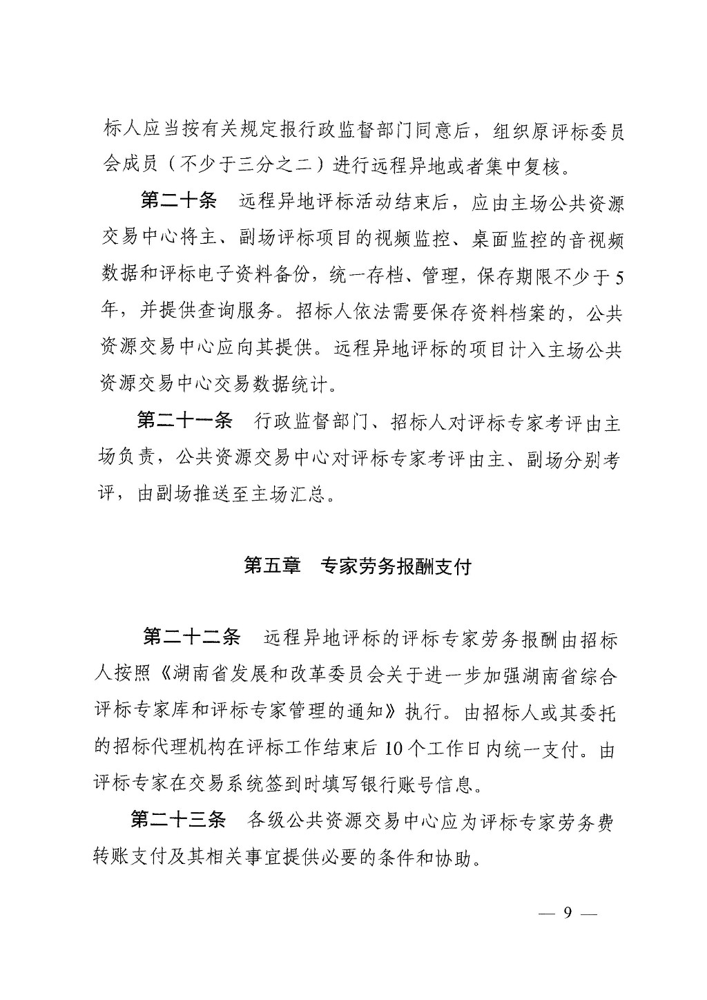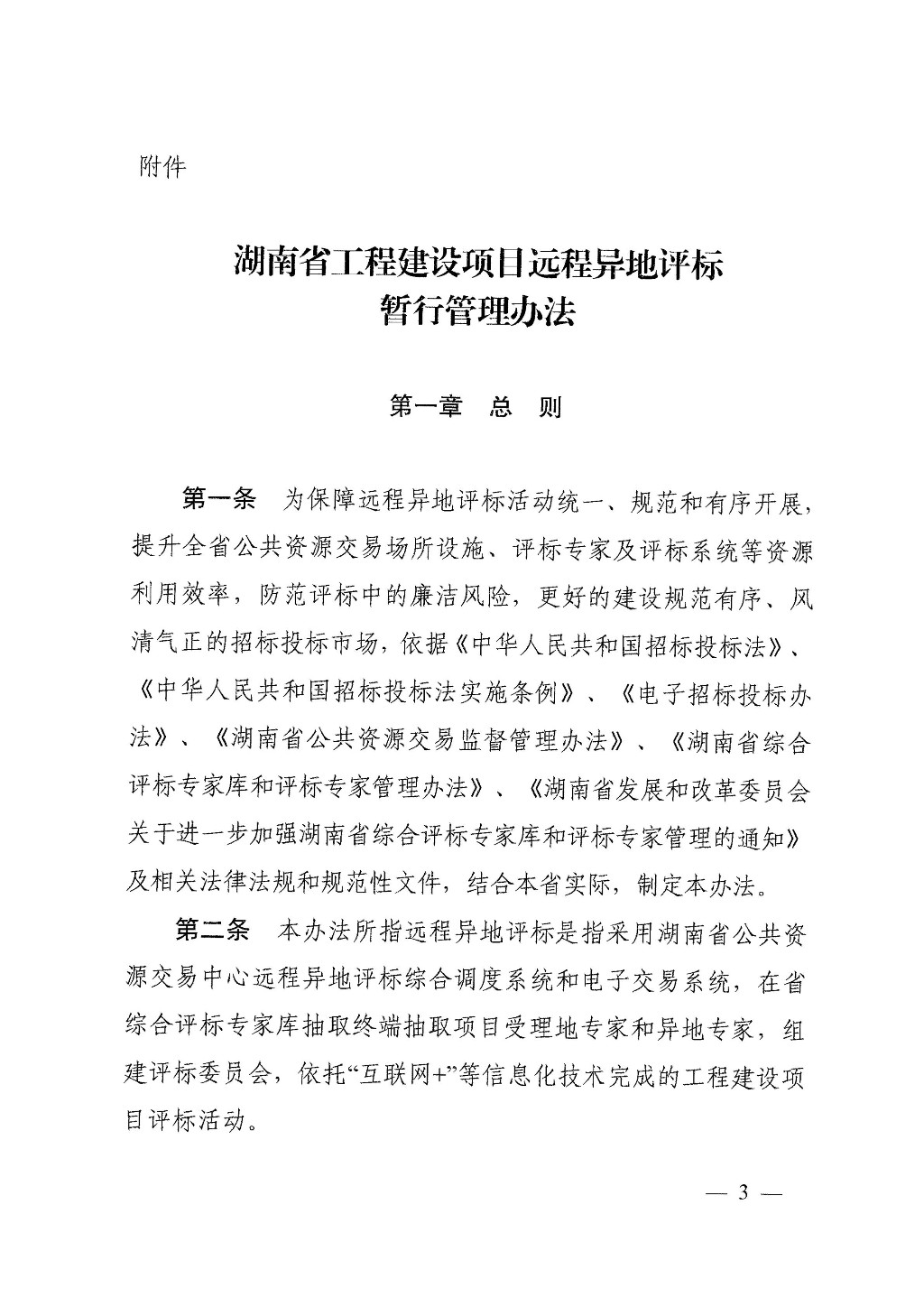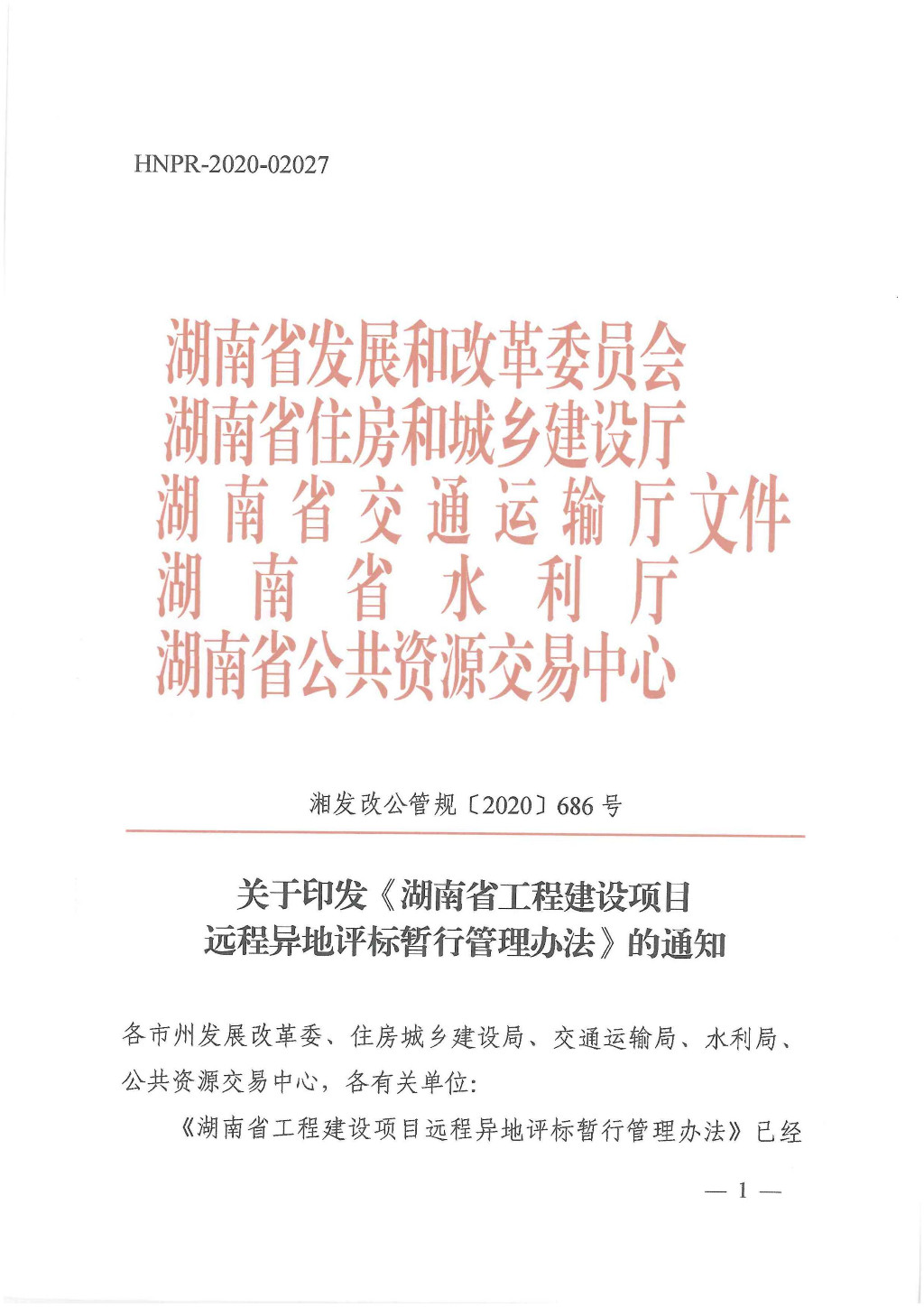 关于印发《湖南省工程建设项目远程异地评标暂行管理办法》的通知