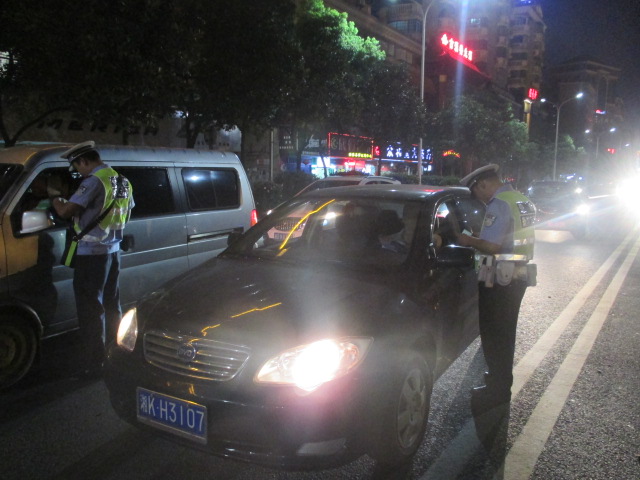 由于近期天气炎热,高温不退,市民晚间聚会、吃夜宵、唱K等娱乐活动大幅度增加,喝酒消暑、助兴导致酒后驾驶行为出现反弹之势,给辖区群众出行的生命财产安全带来极大隐患,因此大队把酒驾整治专项行动作为夏季交管工作的重中之重。当晚7点30分,大队根据清查工作内容,部署二组警力分别在解放路蒸阳南路口、衡州大道蒸阳南路口开展整治,根据夜间清查工作内容,重点查处无牌无证车辆、假牌假证车辆及酒驾、毒驾违法行为。民警在路口设立车辆临时靠边检查点,结合酒驾整治实际工作经验,主要对私家车驾驶人、男性驾驶人,酒气重、脸色红、紧张、注意力不集中、不愿配合交警执法、意图驾车逃离现场的驾驶人进行酒精检测仪吹气检测,截止夜间12点,共检查过往车辆120余台,查处饮酒后驾驶交通违法行为9起。