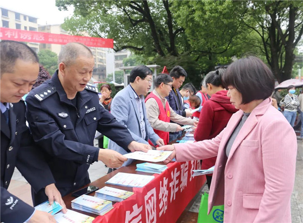 5月16日上午,衡东县公安局经侦大队联合县政府金融办、市场监督管理局、人民银行、税务局、民政局等部门,在县文体广场开展以“与民同心,为您守护”为主题的打击和预防经济犯罪、防范非法集资的宣传活动,切实守护好群众的“钱袋子”。