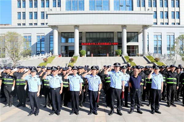 10月1日上午,耒阳市公安局举行2022年国庆节升国旗暨“耒阳义警”授旗仪式。
