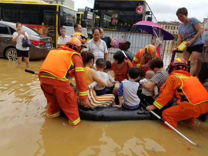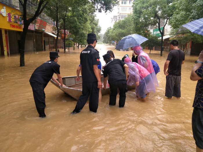 灾情就是命令,衡阳公安消防支队官兵闻警而动,第一时间赶赴灾情现场,连续冒雨作战,成功转移受困群众近千名,包括多名老人、妇女和幼儿。