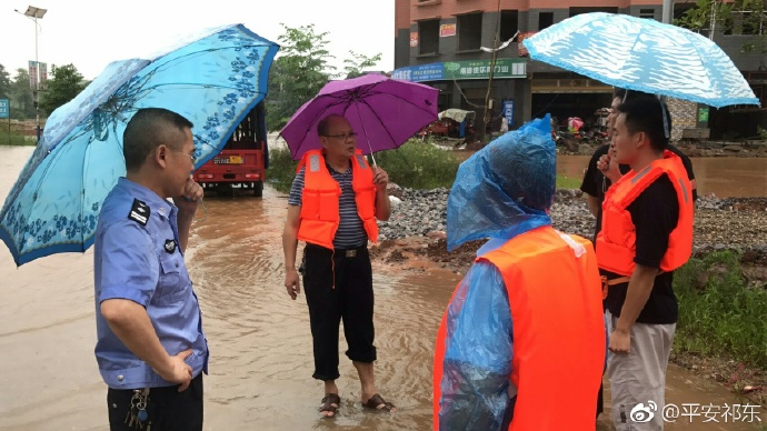 近日的强降雨导致祁东县多处出现险情,公安民警取消休假、强化值班备勤,不顾危险走访排查险情,确保群众生命财产安全。
