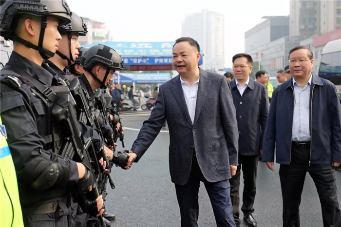 为迅速贯彻落实全国公安工作会议和全省政法系统领导干部专题培训班有关精神,5月10日上午,衡阳市委书记、市人大常委会主任郑建新专题调研“平安衡阳”建设工作。他强调,要全面落实习近平总书记在全国公安工作会议上的重要讲话精神,织密防控网络,提升防控效能,推动“平安衡阳”建设全面提质升级;要大力支持武警部队的建设和发展,不断开创军地共建共赢、融合发展的新局面。