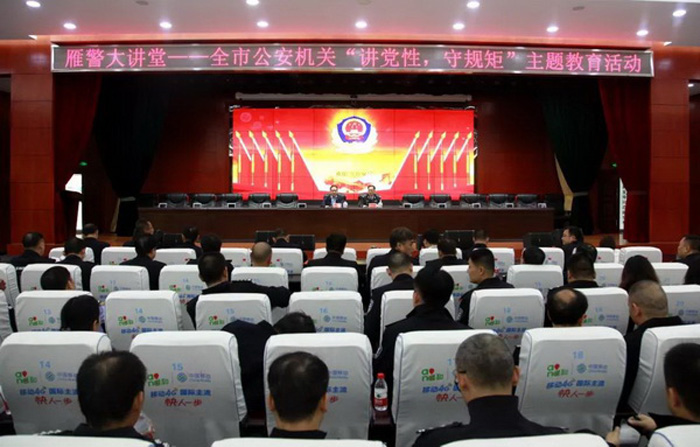 11月2日下午,市公安局通过视频会议形式举办雁警大讲堂——全市公安机关“讲党性·守规矩”主题教育活动,市委常委、市纪委书记、市监察委主任包昌林在市公安局机关主会场为全市公安机关民警上了一堂关于全面从严治党、从严治警的主题党课,市局党委成员、局属单位和城区分局副科以上干部在市局主会场参加学习,各县市、南岳区分局在各自分会场同步收听学习。
