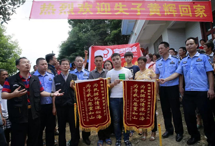 黄辉(胡小杰)满面泪水,在家门口跪倒在地与亲生父母抱头痛哭、倾诉离情。在父母的带领下,黄辉来到祖屋,焚香祭拜祷告。憨厚的黄才玖心情久久难以平复,连声说道:“万分感谢人民政府、感谢公安机关、感谢宝贝回家网站的志愿者们!”与亲生父母团圆后,黄辉告诉记者:自己的感觉难以用语言来表达,要好好陪伴亲人。