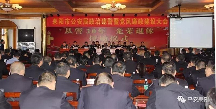 4月18日,耒阳市公安局召开政治建警暨党风廉政建设大会,深入贯彻落实省、市公安机关政治建警工作大会精神。会议对全市公安机关政治建警、党风廉政建设、集打斗争、扫黑除恶、一标三实、“三抓三创”、“警民心连心·共创平安城”四大行动等工作进行了讲评和部署安排。局属各单位主要负责人递交了政治建警暨党风廉政建设责任状。与会人员集中观看了警示教育片《贪路无归》。会议还对集打斗争“冬春攻势”先进单位、精品案件进行了表彰。