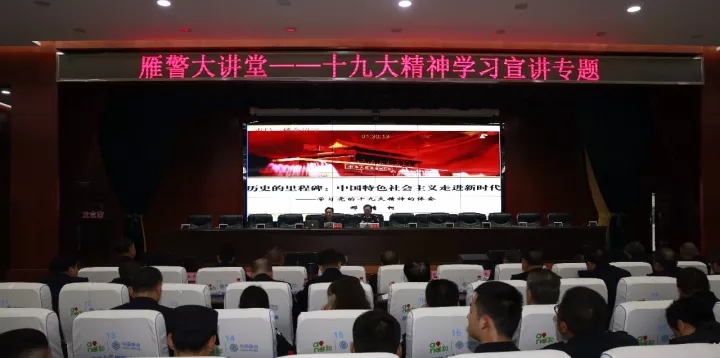 11月9日下午,市公安局举办了雁警大讲堂第三讲,邀请省委讲师团副主任邓清柯教授授课,邓清柯教授以《历史的里程碑:中国特色社会主义走进新时代》为题,为全市公安民警详细解读了党的十九大精神。副市长、市公安局党委书记、局长胡志文出席活动并讲话。