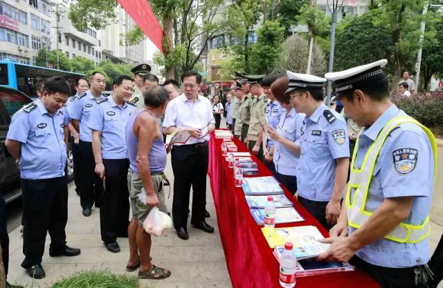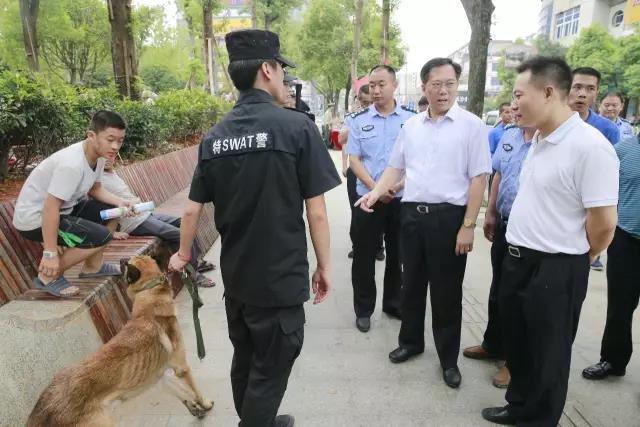 检查途中,胡志文同志看望慰问了正在东风广场开展安全知识宣传的交警和消防员以及正在路面巡逻执勤的巡特警,对他们的辛勤付出表示感谢,并叮嘱他们要增强警觉度,增强巡逻密度和力度,提高见警率和管事率,增加老百姓的安全感。