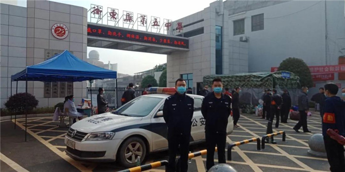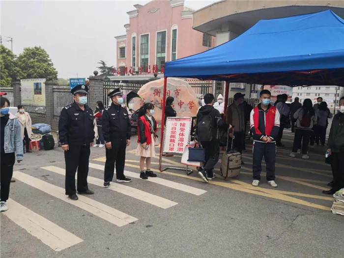 △衡南县公安局“校园卫士”护卫队,协助学校对返校复学师生进行排查和检测,维持复学秩序,坚决做到“五个一律”,用最严格的措施把好校园安全关。