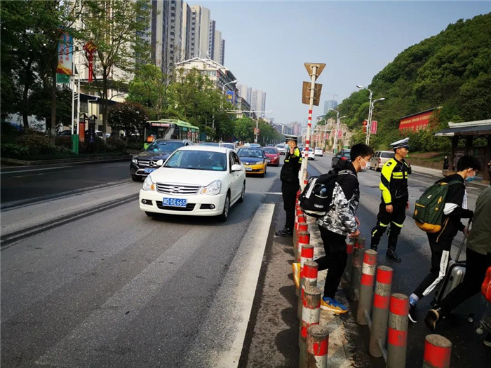 △衡阳交警“校园卫士”护卫队科学部署警力,加强学校周边重要路段巡逻管控和安全检查。并在学校周边设置隔离设施,为学生家长指引方向,帮助学生拿行李确保顺利进校,减少人员聚集;疏导交通,避免道路拥堵。切实保障学生返校秩序,为学校顺利开学保驾护航。