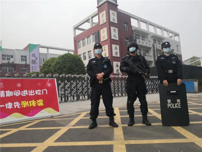 △耒阳市公安局对全市开学复学的66所学校安排330余名警力组成“校园卫士”护卫队,坚决维护校园及周边秩序,全力保障辖区各所学校复学。