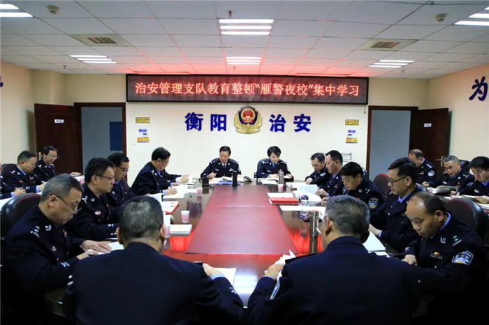 3月18日晚七点至九点,衡阳市公安局大楼灯火通明,这是全局民辅警开展“雁警夜校”集中学习的光。