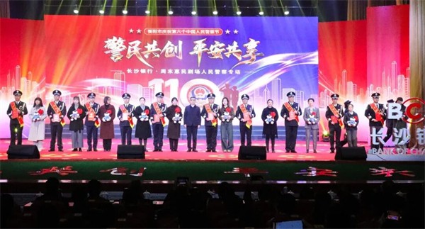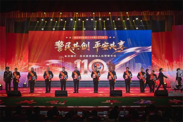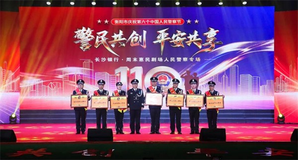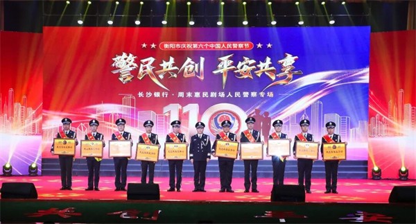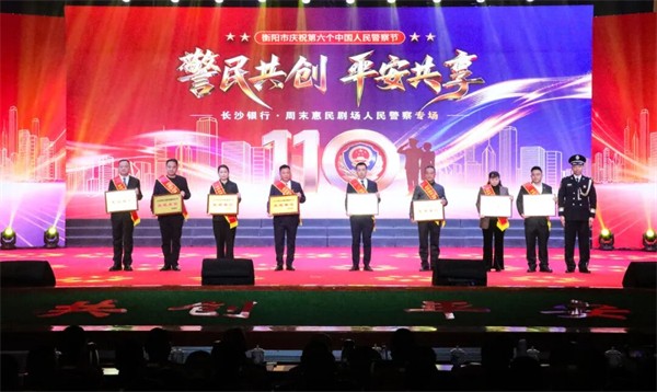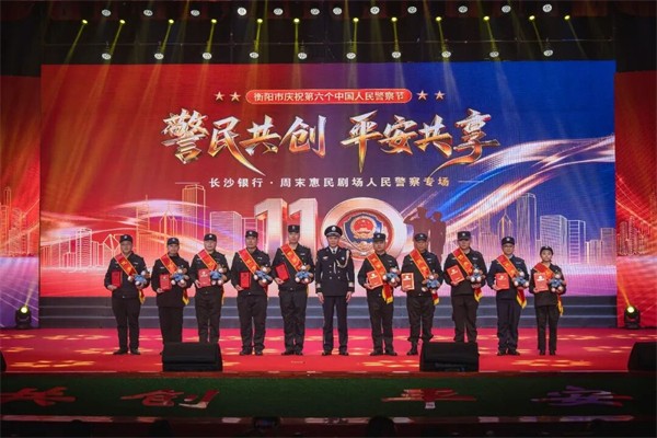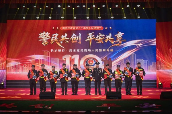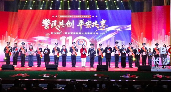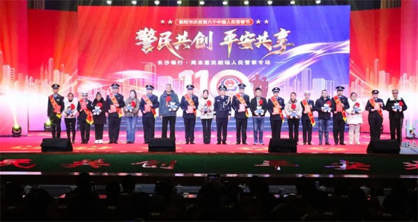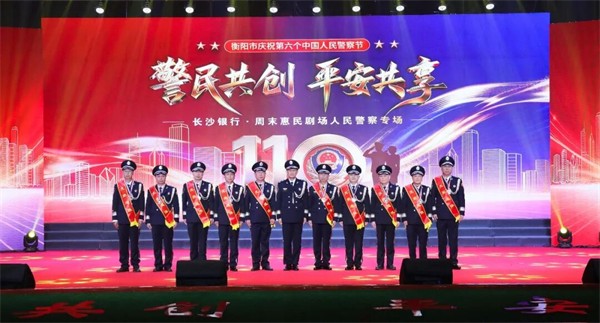 1月10日,衡阳市政府会议中心旌旗猎猎、暖意融融、掌声阵阵,以“警民共创 平安共享”为主题的“长沙银行·周末惠民剧场人民警察专场”活动隆重举行,警民1100余人齐聚一堂,通过丰富多彩的文艺形式和庄严的人民警察荣誉仪式,共同庆祝第六个中国人民警察节,致敬每一位守护平安的“藏蓝力量”。衡阳市委常委、市委政法委书记陈礼洋出席活动并颁奖,衡阳市副市长、市公安局局长赵胜平致辞并颁奖。