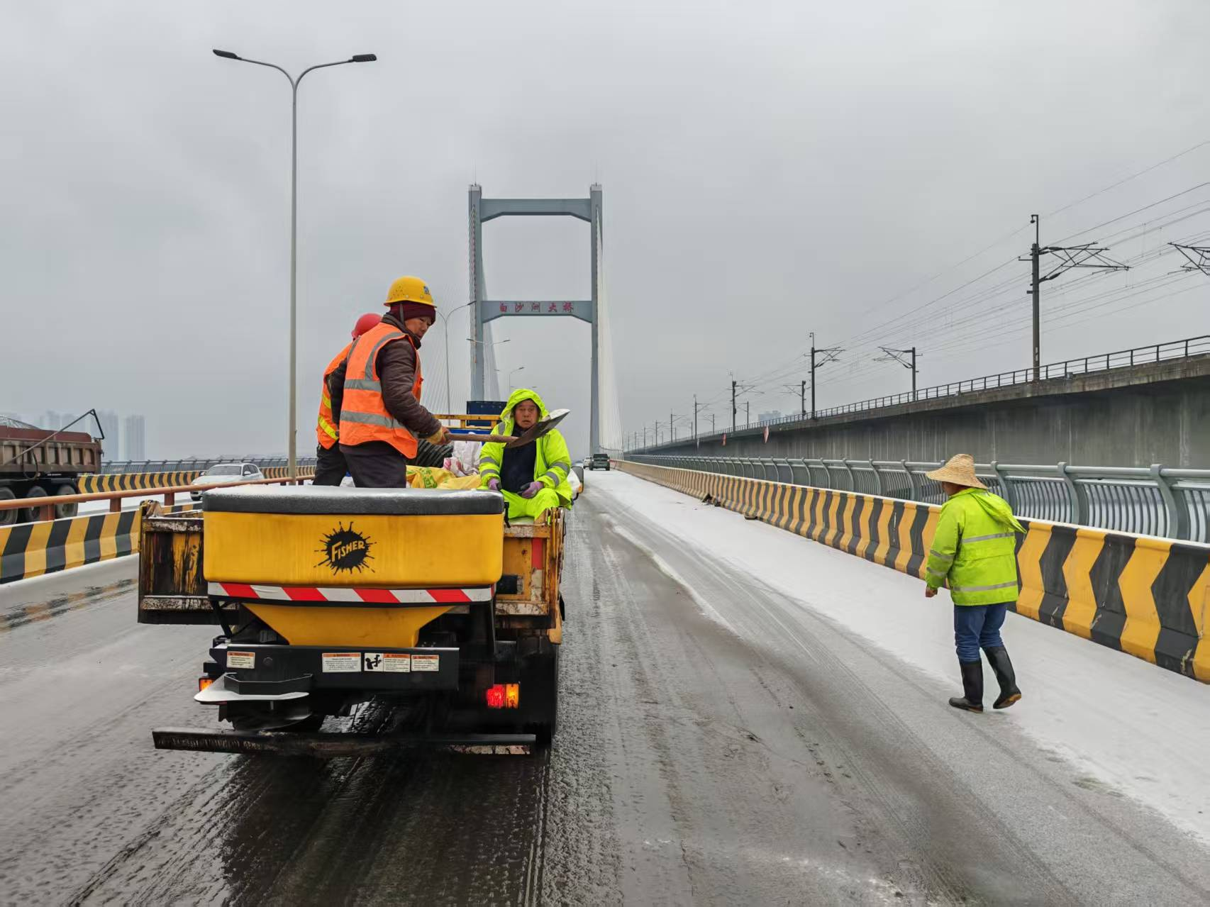 上午9时左右,经高效处置,桥面结冰基本清除,安全隐患彻底排除,白沙洲大桥交通全面恢复畅通。