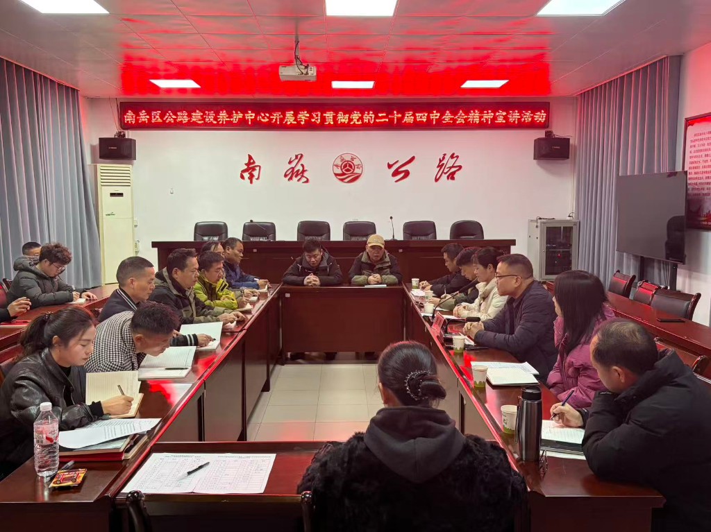 为深入学习贯彻党的二十届四中全会精神,切实把全体干部职工的思想和行动统一到党中央决策部署上来,夯实公路事业高质量发展思想根基,近日,南岳区公路建设养护中心举办学习贯彻党的二十届四中全会精神专题宣讲会。会议特邀区委宣讲团成员、区委组织部副部长周艳同志作专题宣讲报告,中心党支部书记主持会议,中心全体干部职工参会。