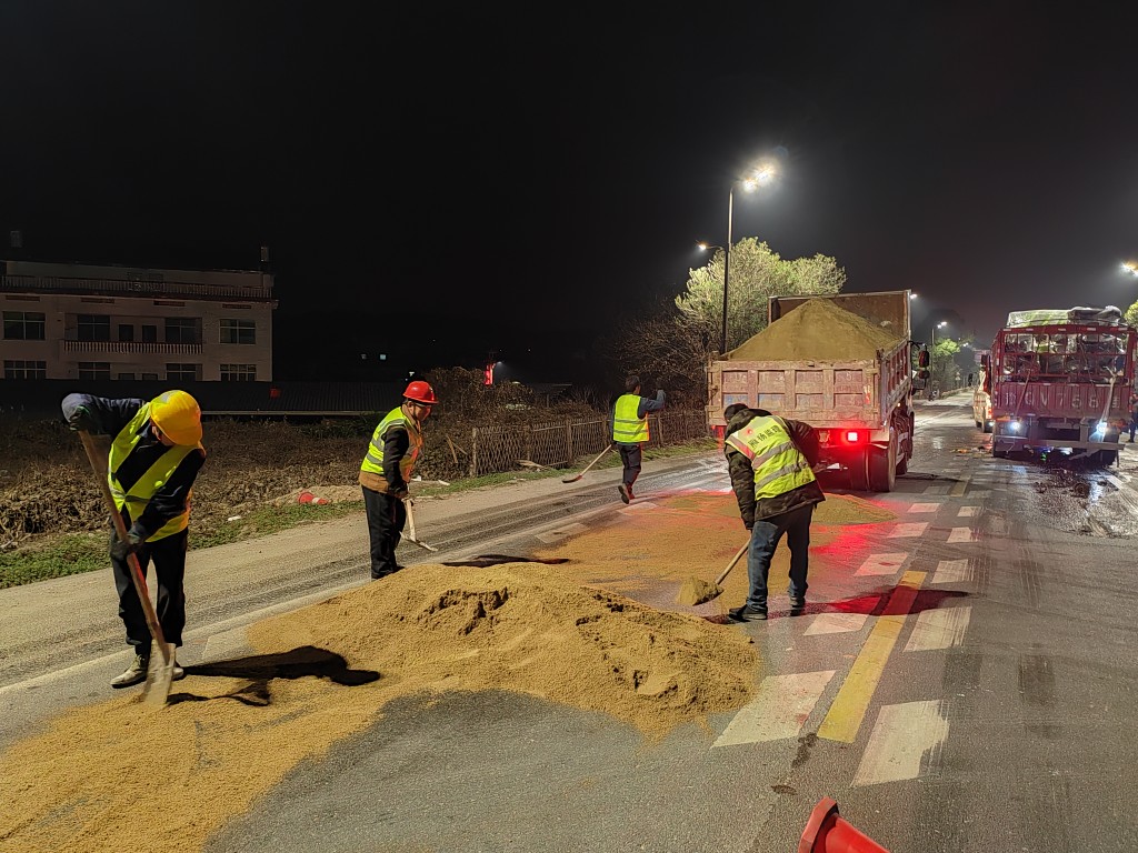 2月5日晚7时许,南岳区公路建设养护中心接险情通知,国道107线衡阳市南岳区红星村路段发生货车追尾事故,造成柴油、机油泄漏,大面积污染公路路面。