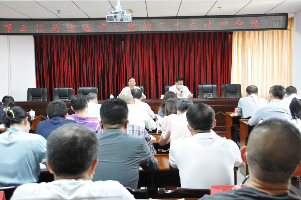 10月25日下午,市工信局召开局机关全体干部职工及所属单位负责人会议,专题传达学习党的二十大精神以及省委、市委传达学习党的二十大精神,安排部署学习贯彻落实工作。市工信局党组书记、局长邹锟主持会议并讲话,党组副书记、副局长刘林生传达党的二十大精神。