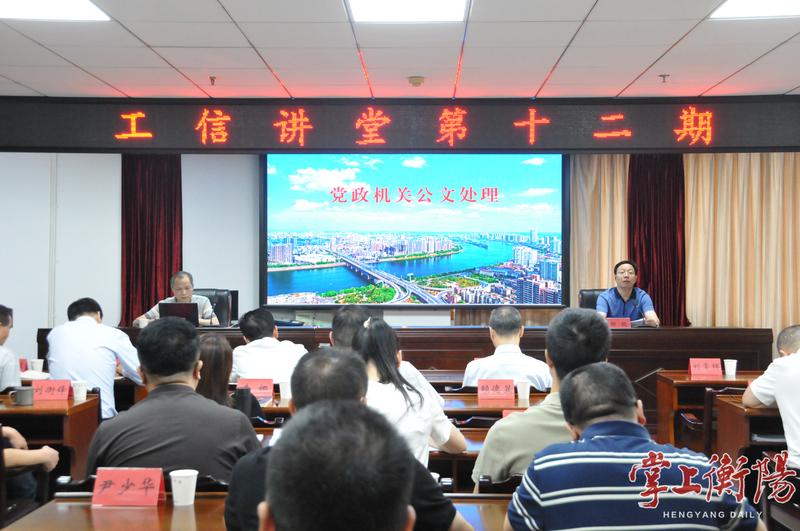 掌上衡阳10月14日讯(全媒体记者邓小山 通讯员邓静)10月13日,衡阳市工业和信息化局举办第十二期“工信讲堂”,聚焦“党政机关公文处理”与“工信信息编写”两大主题开展专题学习。局党组书记、局长邹锟主持学习并作总结讲话。局机关全体干部职工及局属单位班子成员参加学习。