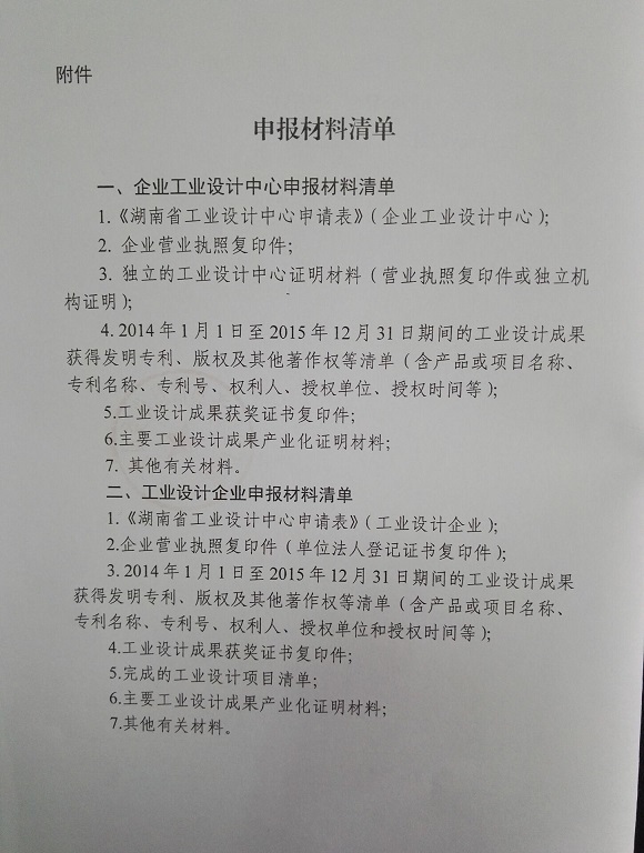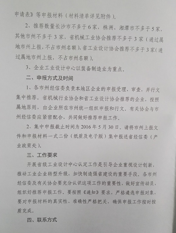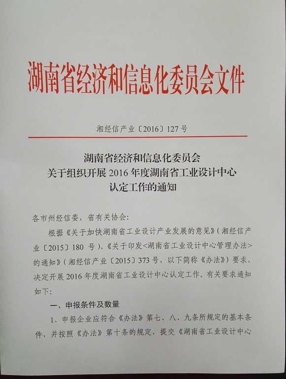 关于组织开展2016年度湖南省工业设计中心认定工作的通知