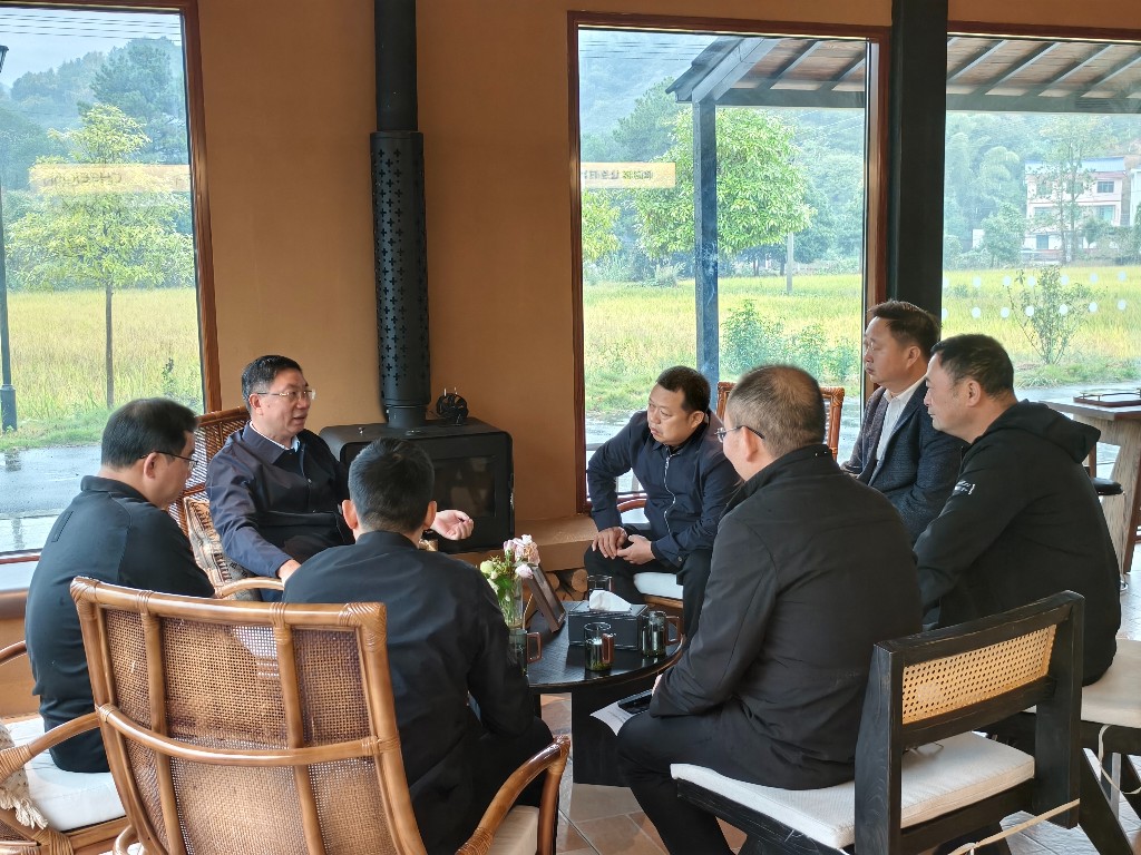 11月3日,镇党委书记陈晓武镇陪同区委书记刘浪一行在新村村麦客旅居宿集调研村级帮扶产业发展情况。