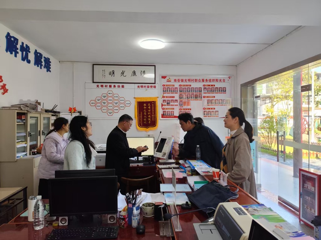 11月4日,镇社会事务综合服务中心和区民政和人力资源社会保障局、税务局到红星村、新村村查看2026年城乡居民医保收缴情况。