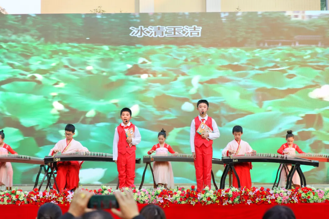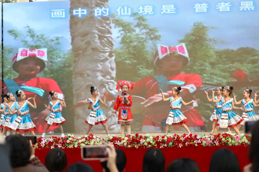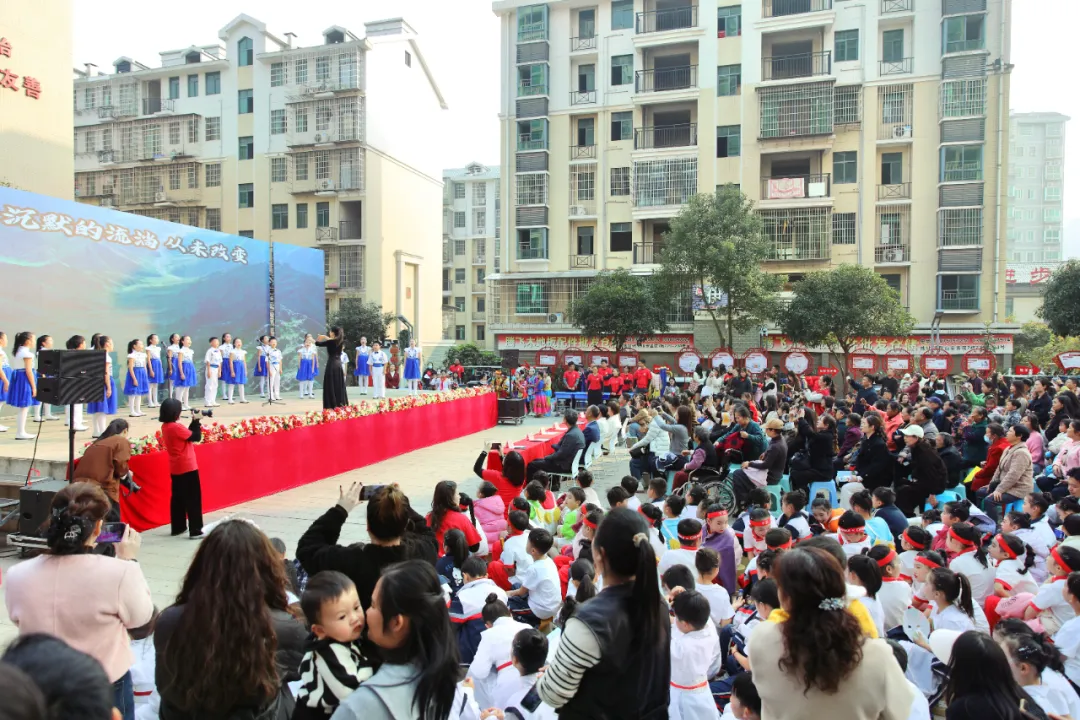活动在碧乐合唱团《莫尼山》的清澈和声启幕,系列节目围绕“石鼓文脉+家乡发展”主线层层铺展:演讲社团带来《石鼓长歌》,以孩童视角对话石鼓历史,字里行间锚定文化根脉的接续;师生化身“推荐官”带来说唱节目《魅力石鼓我来推荐》,《撒尼喳喳呀》以民族服饰与灵动舞姿展现多民族活力,《爱我中华》《我是一颗跳跳糖》诠释同心力量与童真风采;筝韵诵读《跟着课本去旅游》、葫芦丝乐《龙的传人》则将传统艺术与经典文化深度融合,让书面知识成为可触摸的文化体验。教师强师乐队压轴献唱《石鼓山水》,用深情旋律勾勒家乡画卷,引发全场热烈共鸣。