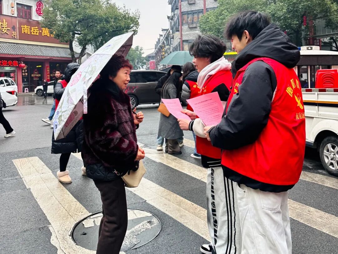 为保障游客游玩舒心、出行顺畅,祝融街道提前谋划、精心部署,在辖区景区周边、交通要道、人流密集区域设置志愿服务点位,为游客提供全方位服务。同时,针对景区停车难问题,免费开放办公点供游客停车,切实解决游客出行后顾之忧。面对低温阴雨天气,志愿服务队伍始终坚守岗位、履职尽责:衡岳社区青年志愿者在西街口为游客指引路线、答疑解惑;岳庙社区志愿者在庙东湿滑路段耐心疏导人流、提醒防滑避险,贴心守护游客出行安全;迎宾社区借助党建+旅游驿站,开展南岳全域旅游讲解和休息休憩、手机充电等志愿服务,全方位满足游客旅途需求。