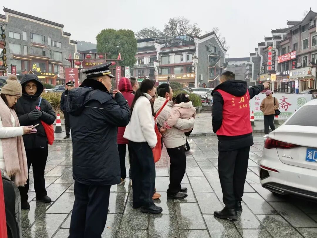 春节期间,南岳景区迎来客流高峰,祝融街道组织辖区党员干部、青年学生、热心居民组成志愿队伍坚守一线,以热忱服务迎接八方游客,让一抹抹"志愿红"成为南岳最动人的节日风景。