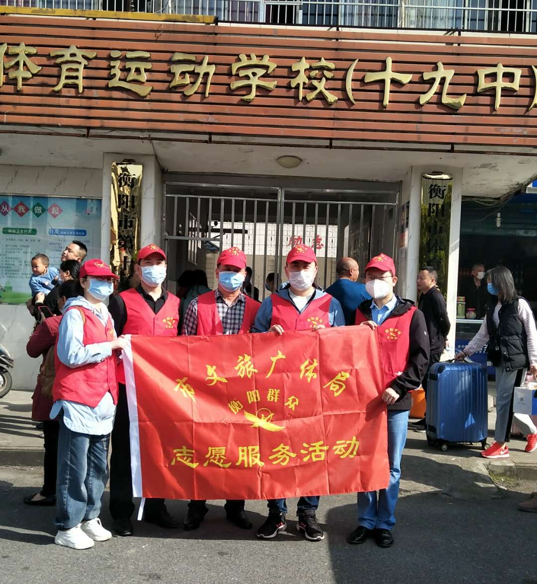 4月15日清晨,衡阳市文旅广体局"衡阳群众"志愿者早早地来到了衡阳市体校(衡阳市十九中),和学校行政人员一起在校门口忙碌。体温测试仪、登记表及安全防护栏,安保员、测量员、登记员等一切准备就绪后,静静地等候学生们的到来。