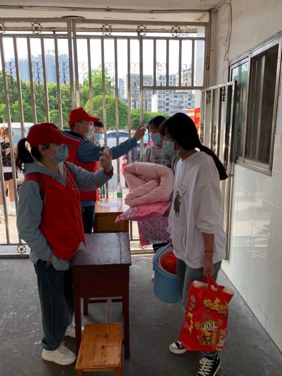 "同学,请戴好口罩","同学,别急,请在这里排队量体温","这位家长,您不能进,东西我来帮您拿"。"衡阳群众"热心周到的服务,复学复课工作井然有序。