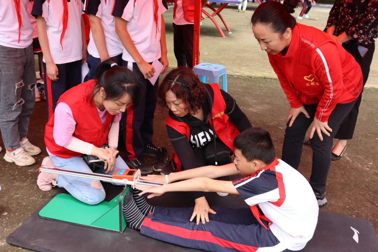 国民体质监测中心工作人员为孩子们进行各项体质检测