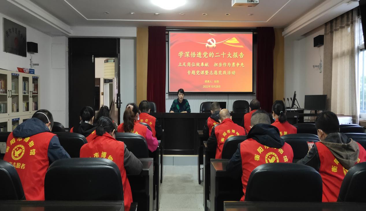 (通讯员:李美晨)为推进学习贯彻党的二十大精神走深走实,提升党员理论素养,不断将学习成果转化为推动工作的强大动力。10月28日下午,衡阳市博物馆开展了"学深悟透党的二十大报告"专题党课暨志愿实践活动。