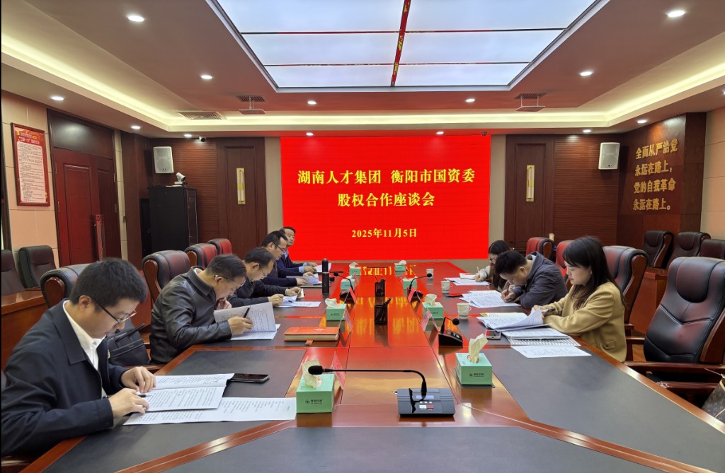 11月5日上午,湖南省人才集团党委书记、董事长黄旭带队到衡阳市国资委,就省市人才集团开展股权合作事宜进行深入交流。衡阳市国资委党委书记、主任蒋长富出席座谈会。