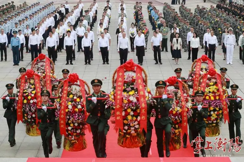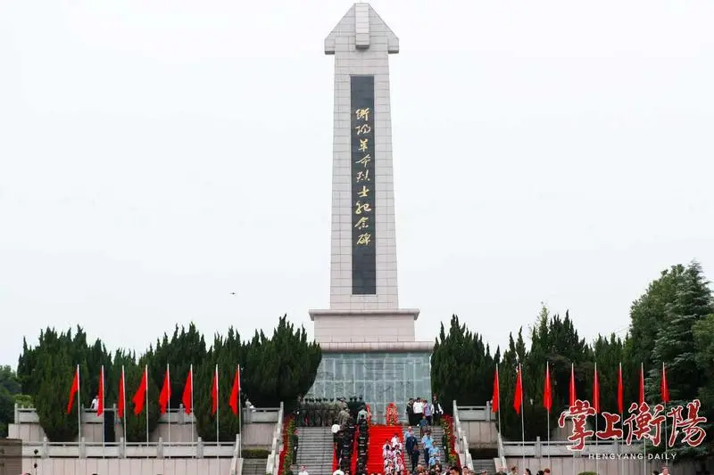 在庄严肃穆的衡阳市烈士陵园,衡阳革命烈士纪念碑巍然耸立。衡阳革命烈士纪念碑前,我市党员干部、烈士家属、军队离退休干部、老战士、退役军人、武警部队官兵及民兵、公安干警、消防救援指战员、学校师生代表,手持鲜花,列队肃立。