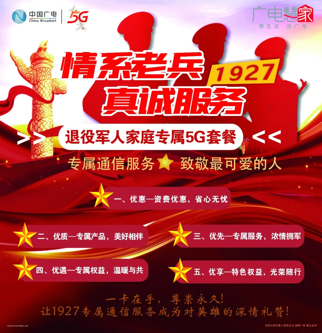 当前,国家正全面推进退役军人服务保障体系建设。作为民生基础的通信服务,正是连接军人荣誉与社会关怀的重要纽带。中国广电衡阳公司,作为拥有红色基因的通信运营商,依托其覆盖广、信号强的网络优势,始终致力于为军人群体提供 “用得上、用得起、用得好” 的通信服务。