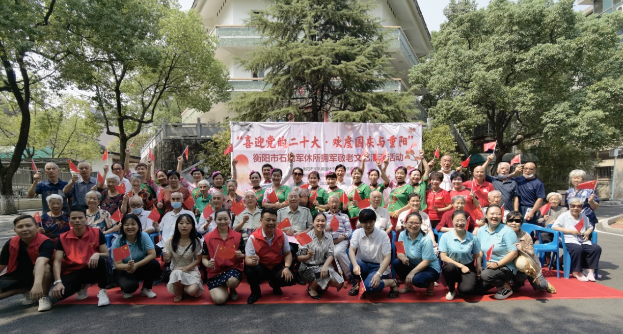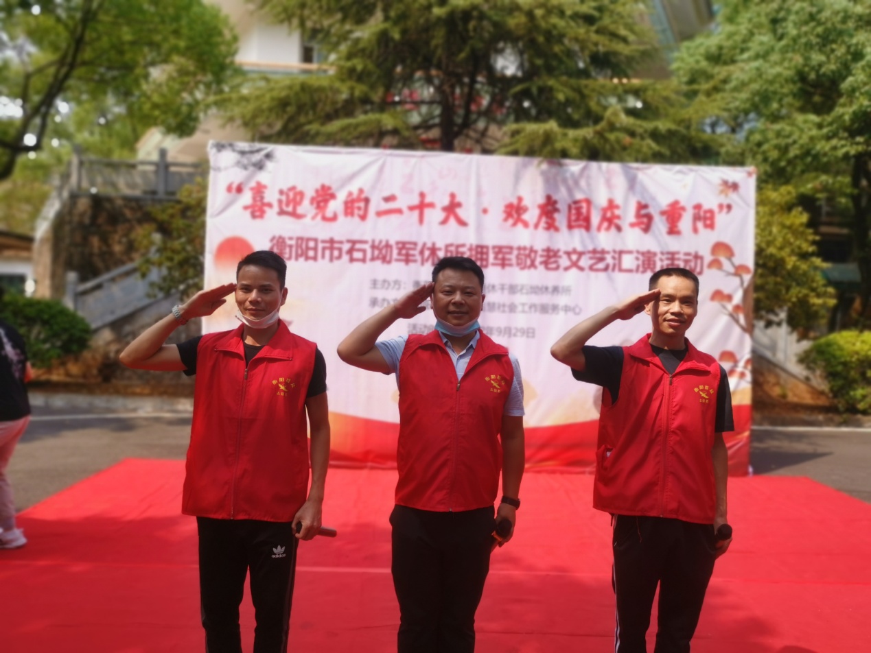 9月29日,阳光明媚,秋高气爽,为庆国庆、话重阳,衡阳市石坳军休所举办"喜迎党的二十大·欢度国庆与重阳"文艺汇演活动,"衡阳群众"志愿者陪同军休干部、退休人员、遗属等服务对象,共享视听盛宴,共营节日气氛。