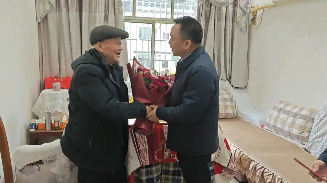 “感谢党和政府一直记挂着我,心里特别暖和!”简单的仪式、真挚的问候,让老人真切感受到尊崇与关爱。